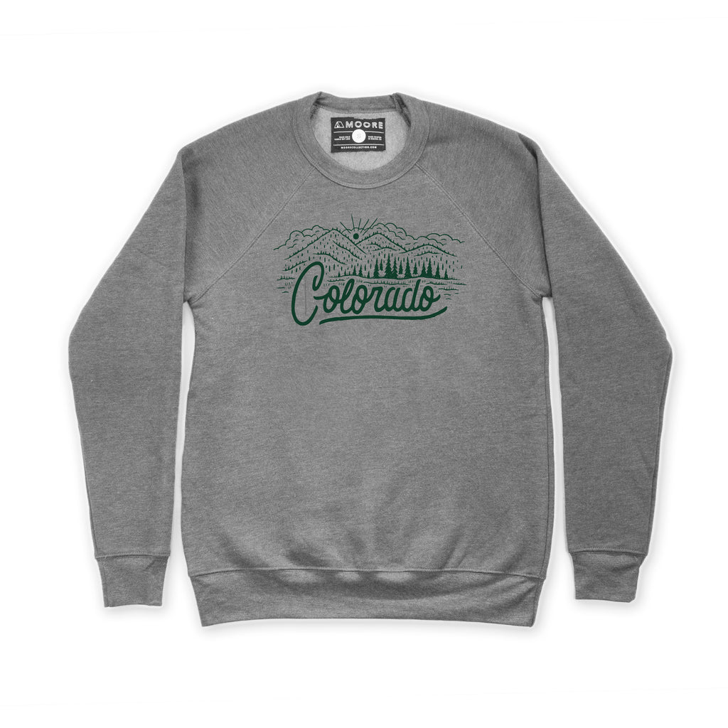 This sweatshirt is part of our Rocky Mountain Collection, which aims to encapsulate the place we love the most, our home, Colorado. For this design, Tanner used a classic hand lettering script with a simple Colorado landscape.