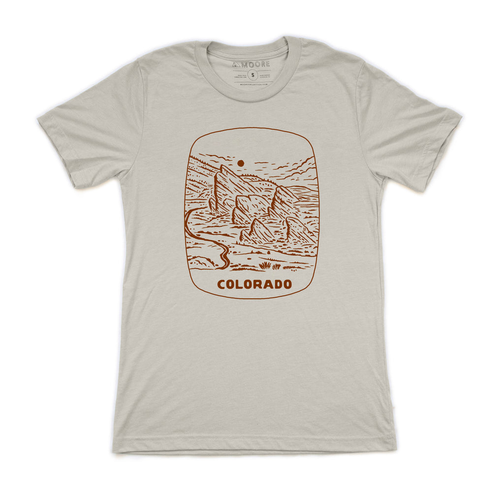 Made by Moore, the Red Rocks Tee is a wearable shoutout to sandstone sunsets, live music, and Colorado adventure.