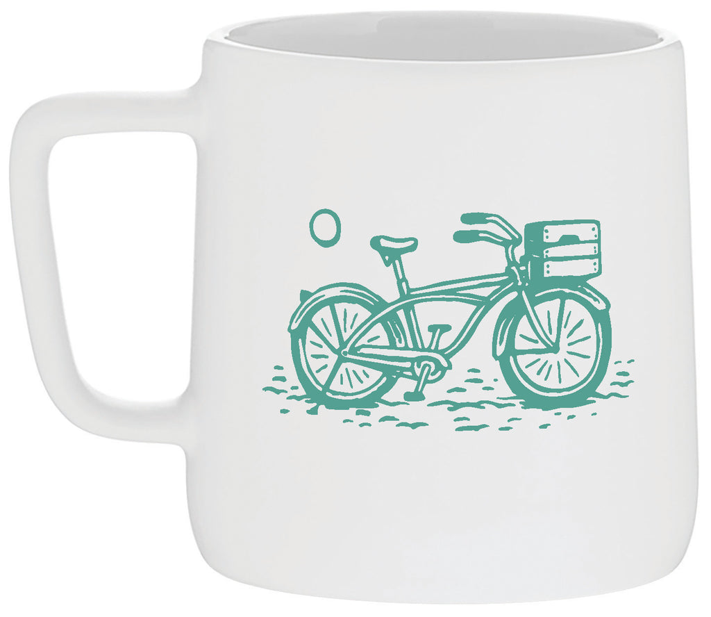 Coastal mornings meet classic charm with the Beach Cruiser Mug. This 12oz white ceramic mug features a hand-drawn beach cruiser design printed in seafoam ink, bringing breezy bike rides and laid-back vibes to your daily coffee or tea.
