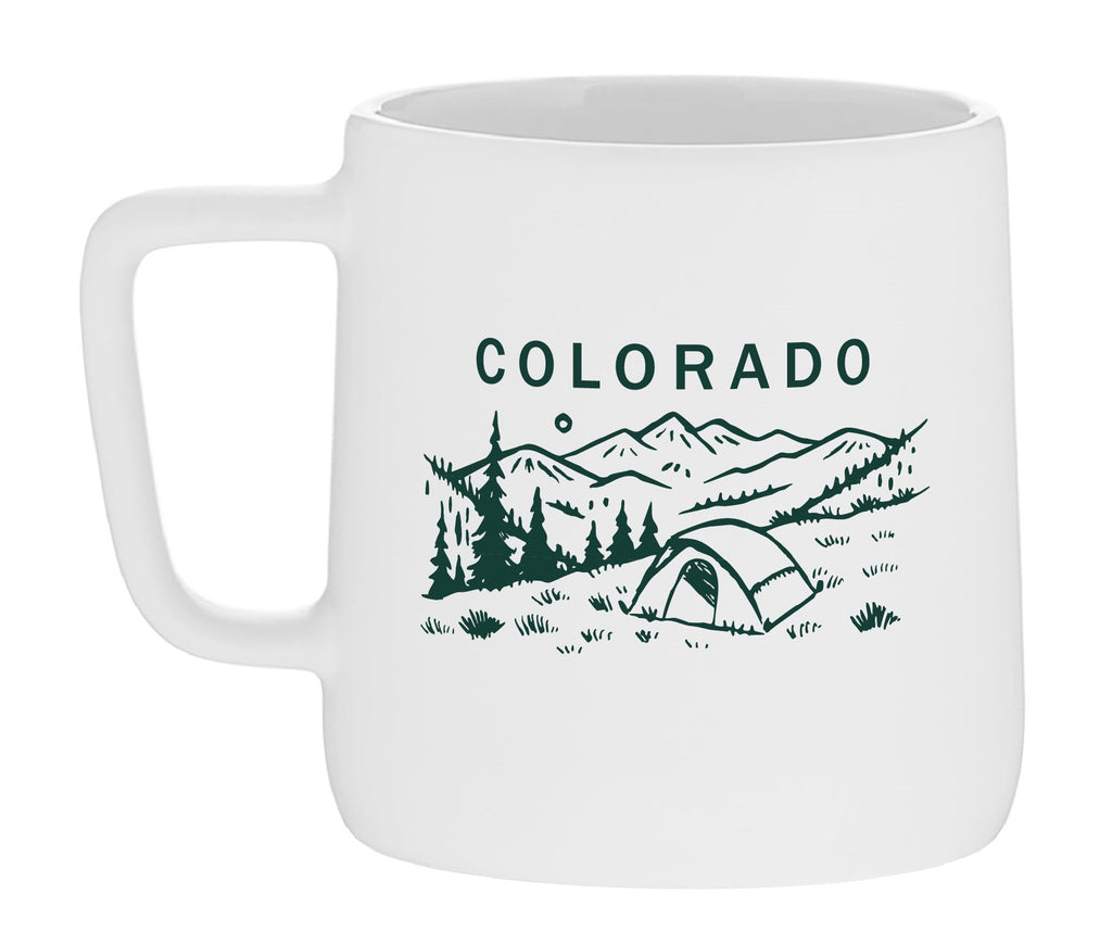 Breathe in that alpine air—our 12oz Camp Colorado Mug brings the spirit of the Rockies to your morning routine. With a clean white ceramic body and rich dark green print, it’s perfect for early hikes, campfire coffee, or cozy days at home.