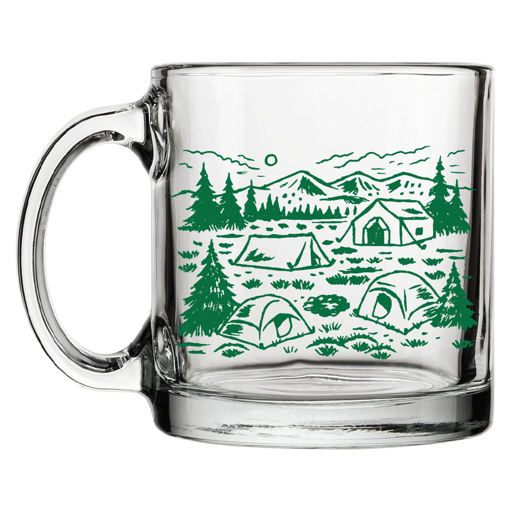 Campground Glass Mug – 13oz Green Print | Printed in the USA