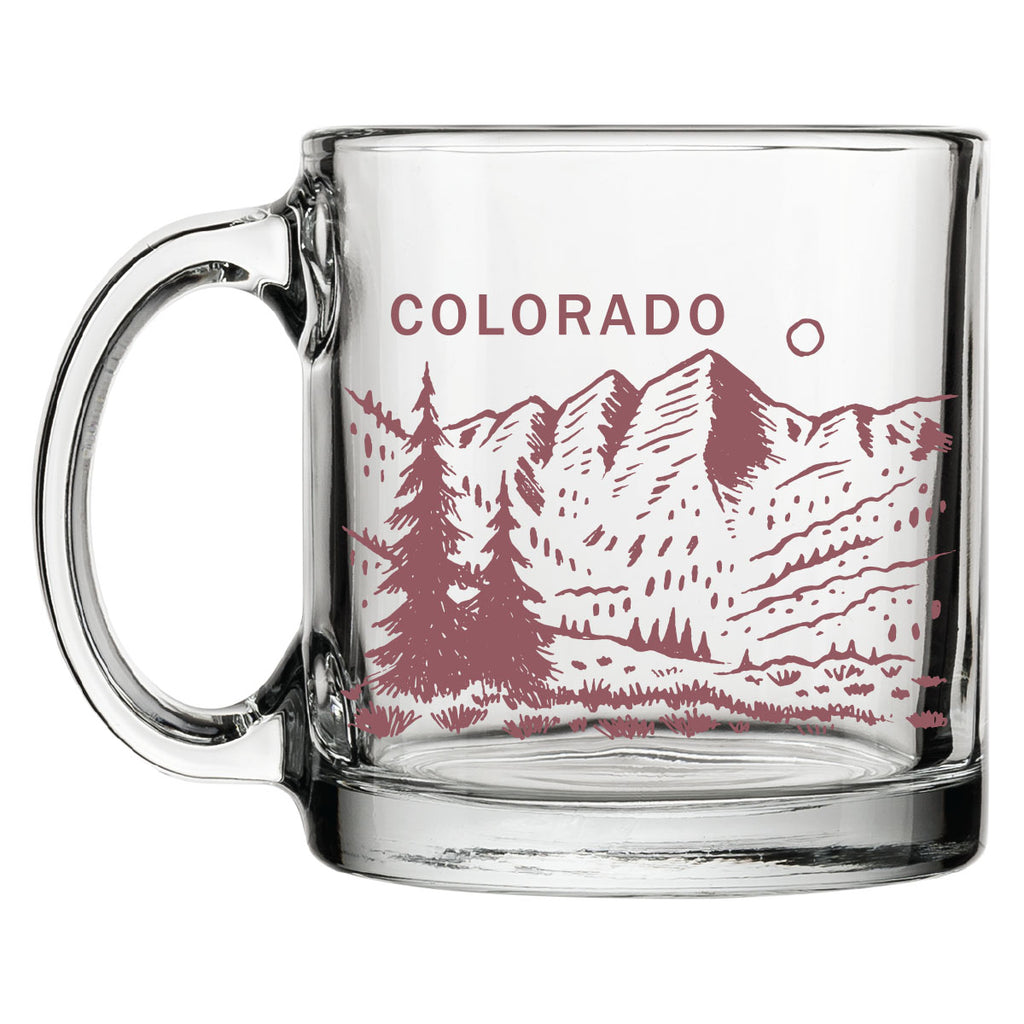 Bring iconic Colorado peaks to your morning routine with our 13oz Maroon Bells Glass Mug. Featuring a deep maroon print on clear glass, this mug captures the quiet beauty of the Rockies in a warm, functional design.
