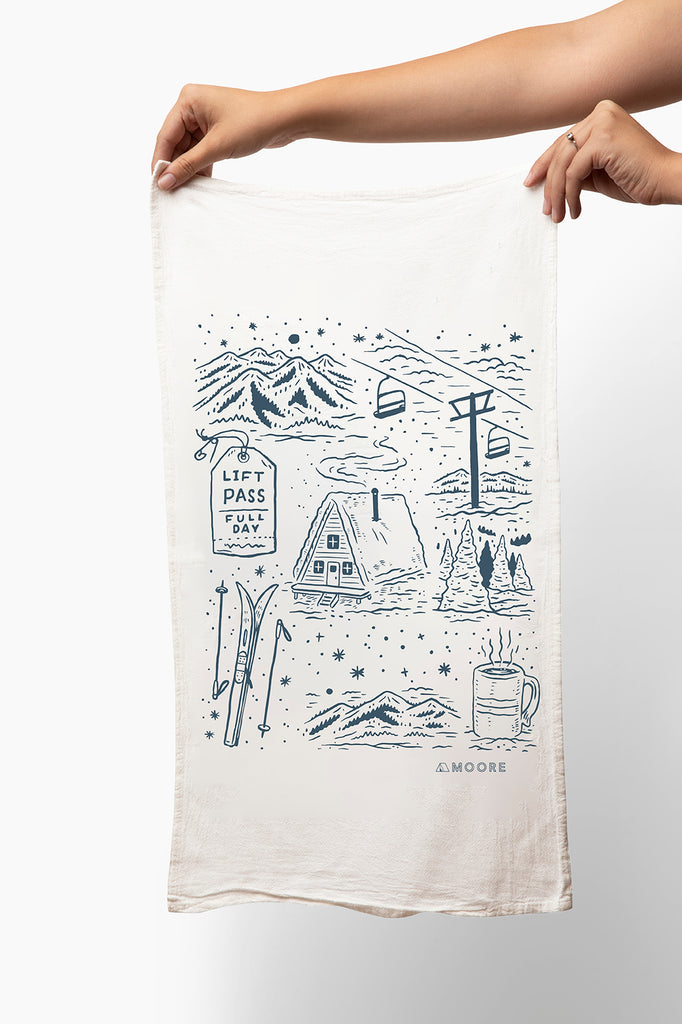 Ski Days Flour Sack Tea Towel – 15x25 | Hand-Printed in Denver with Water-Based Ink