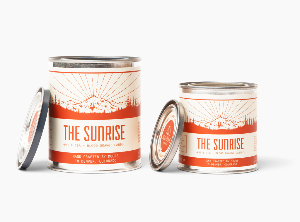 Bright, fresh, and full of promise, the Sunrise Candle is an all-natural soy candle crafted to capture the feeling of a new day. Hand-poured in small batches in our Denver workshop, this scent blends soft white tea with a hint of blood orange—creating a light, citrusy fragrance that’s both uplifting and serene. Inspired by the label artwork, this candle was designed to reflect the quiet optimism of early morning light.