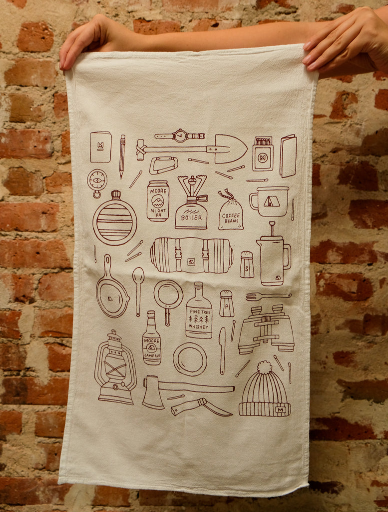 Camp Gear Flour Sack Tea Towel – 15x25 | Hand-Printed in Denver with Water-Based Ink
